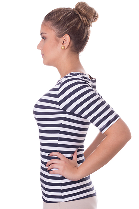 Blusa meia manga decote canoa estampas em tecido LIGHT CO2 (fio AMNI SOUL ECO, o primeiro fio de Nylon 6.6 biodegradável do mundo), com fator de proteção solar 50 UVA e UVB.