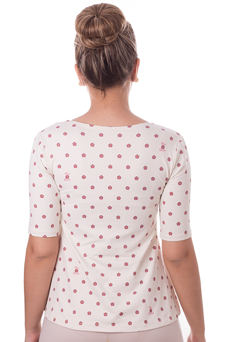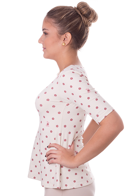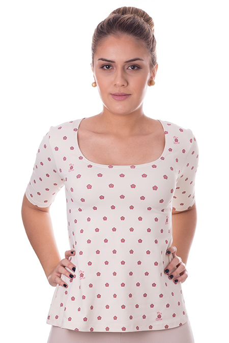 Blusa meia manga decote redondo EVASÊ estampas EXCLUSIVAS em tecido LIGHT CO2 biodegradável, com fator de proteção solar 50 UVA e UVB.