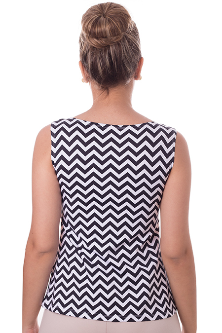 Blusa regata decote canoa EVASÊ cores e estampas em tecido LIGHT CO2 biodegradável, com fator de proteção solar 50 UVA e UVB.